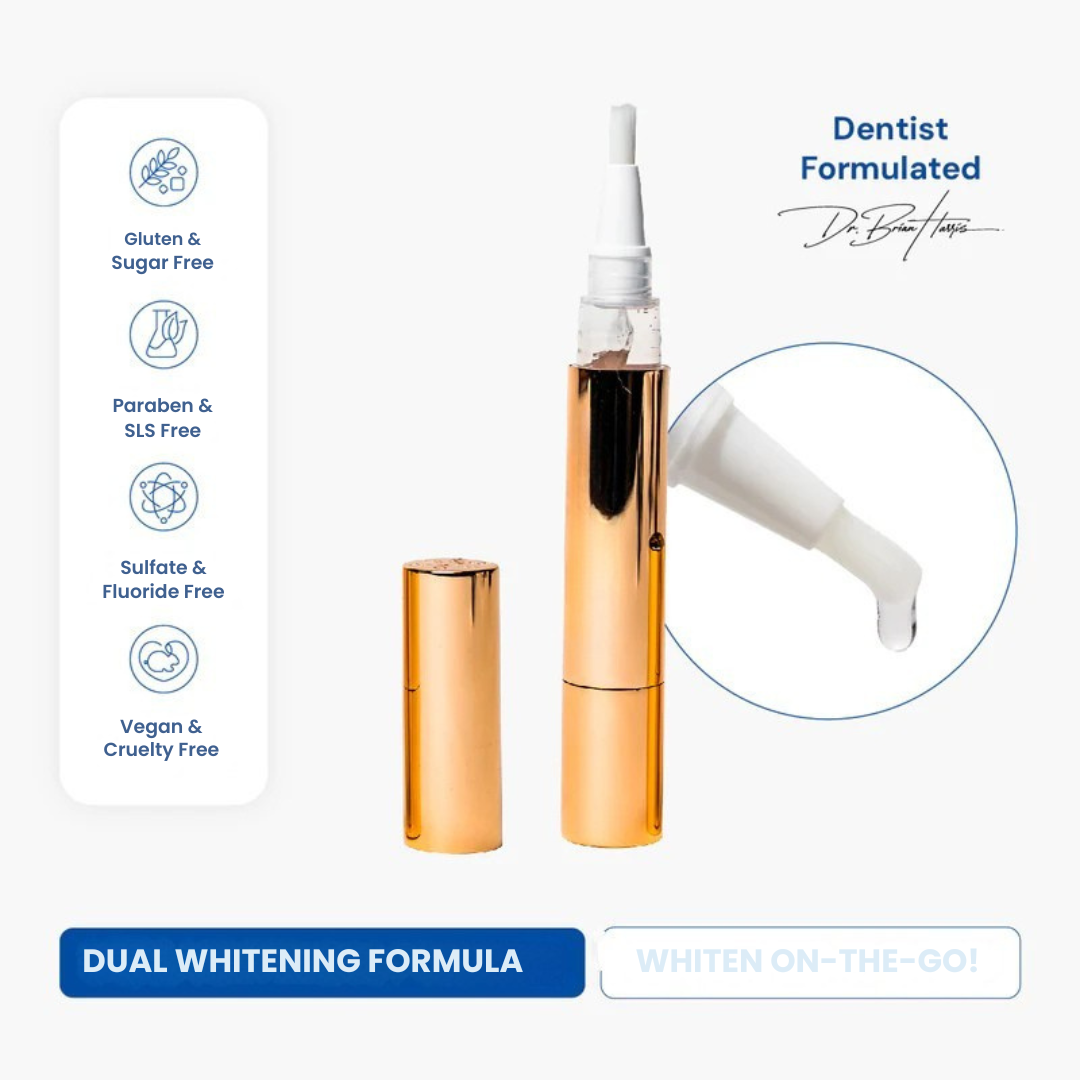 Twist the pen until the serum comes out, apply a thin layer to your teeth, and smile for 30 seconds.